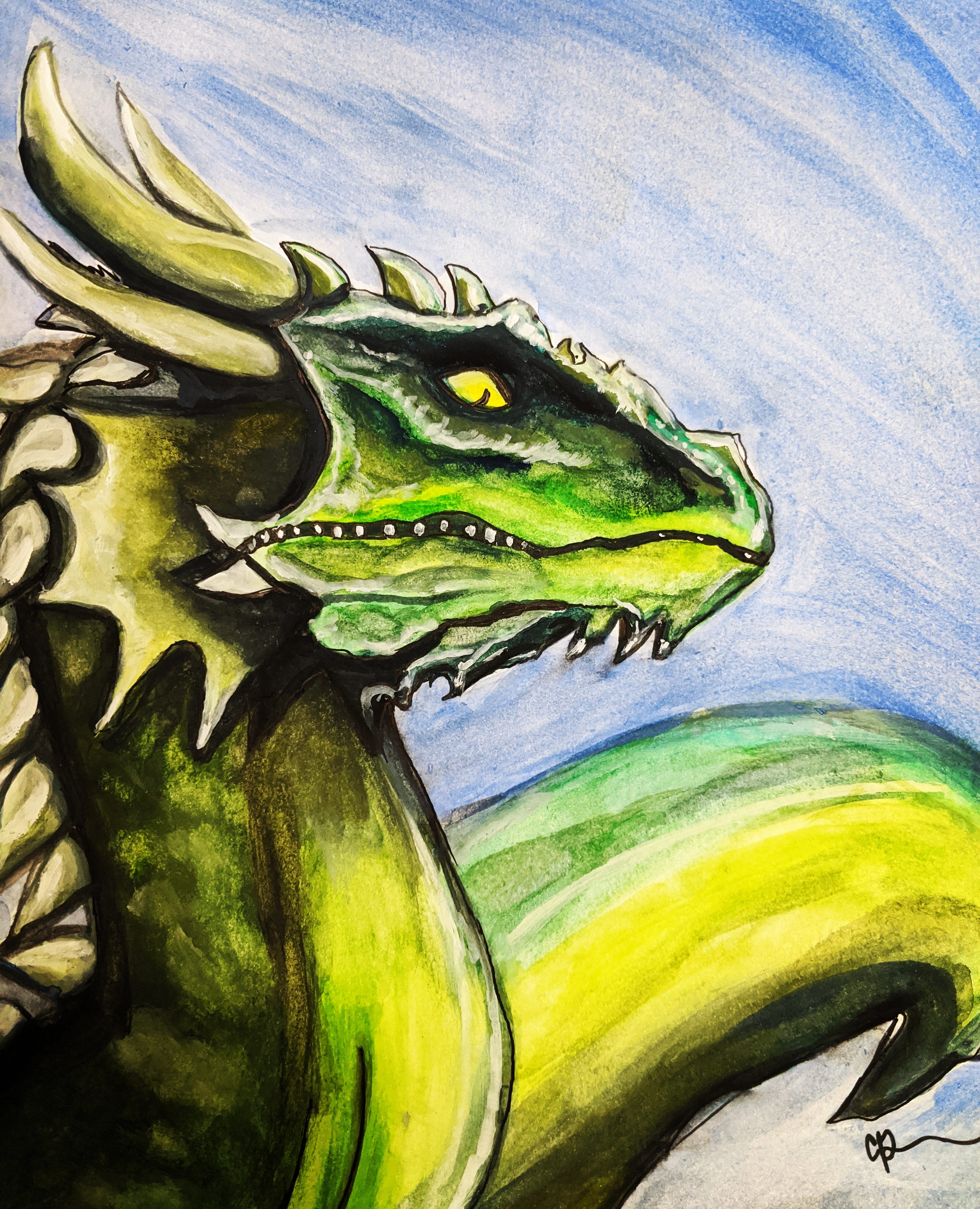 Dragon head portrait intuitively created by Caitlin Darbee @caitlindarbee_art on Instagram
